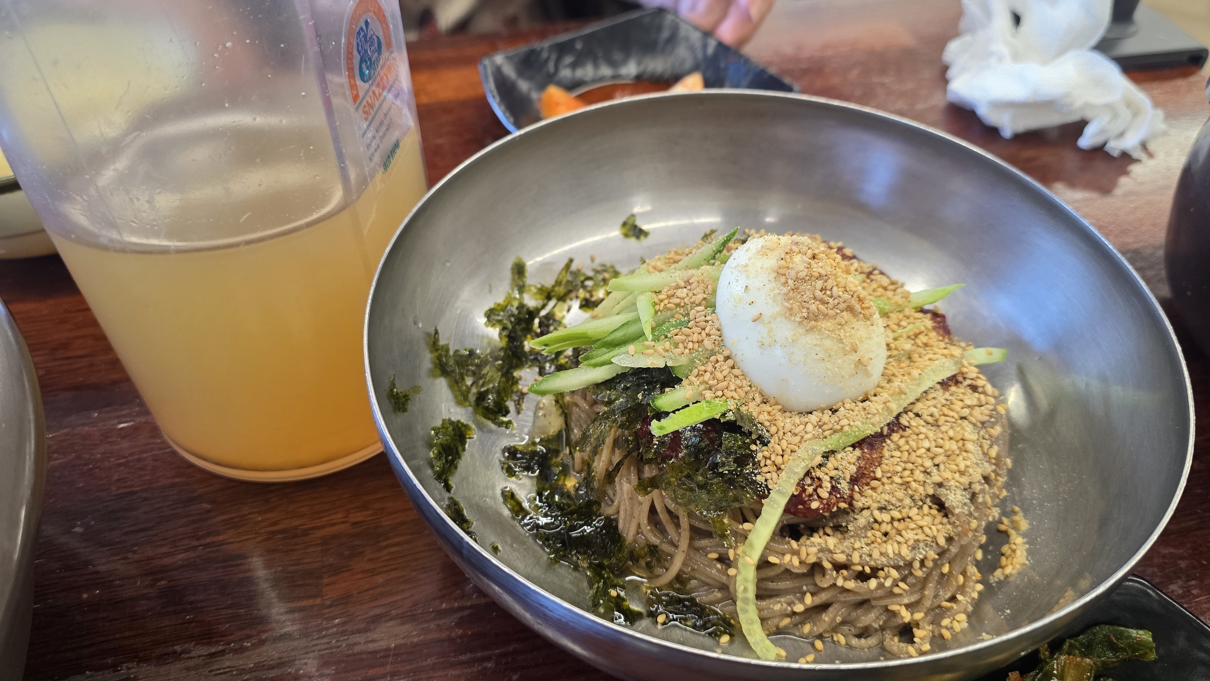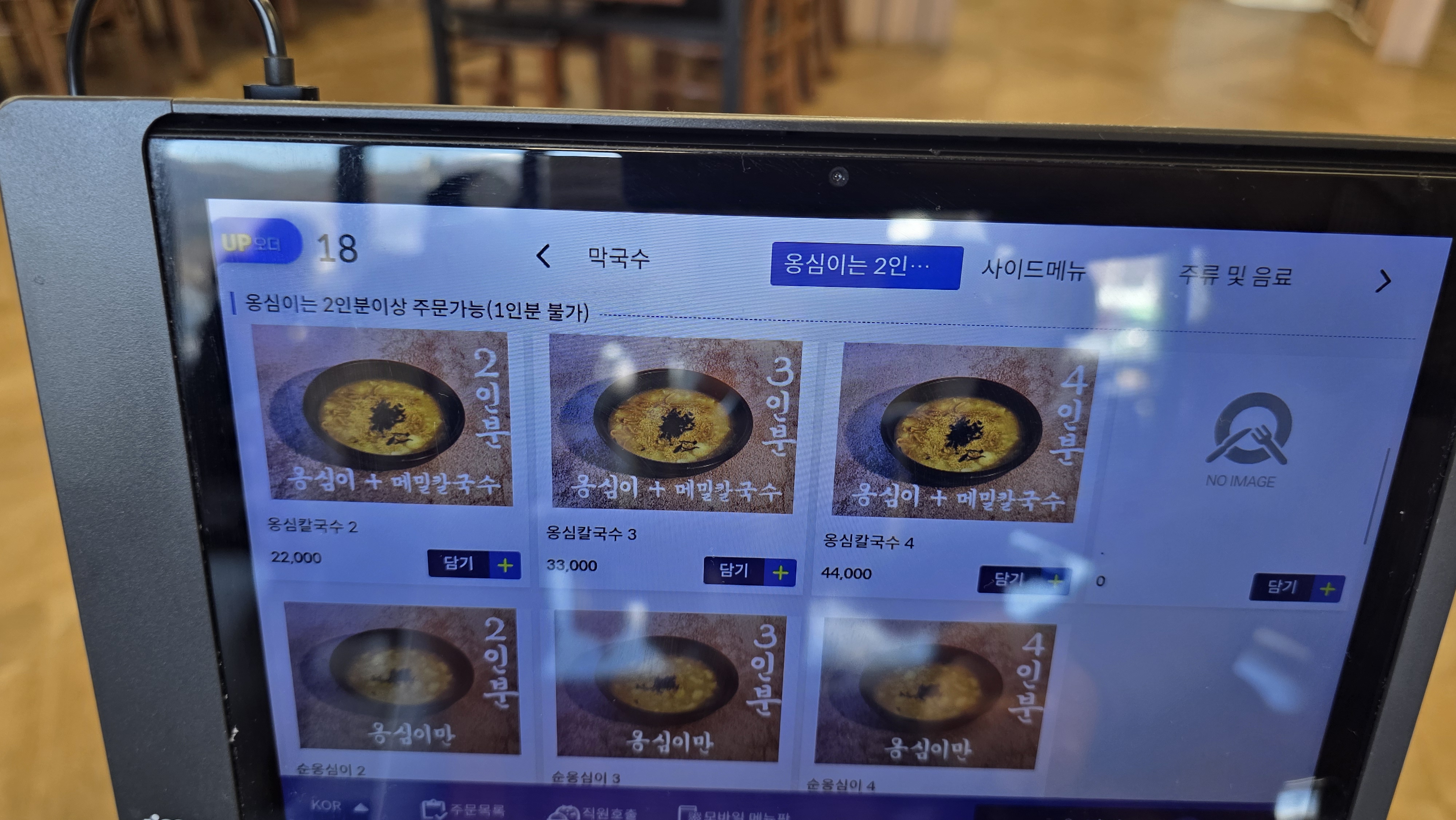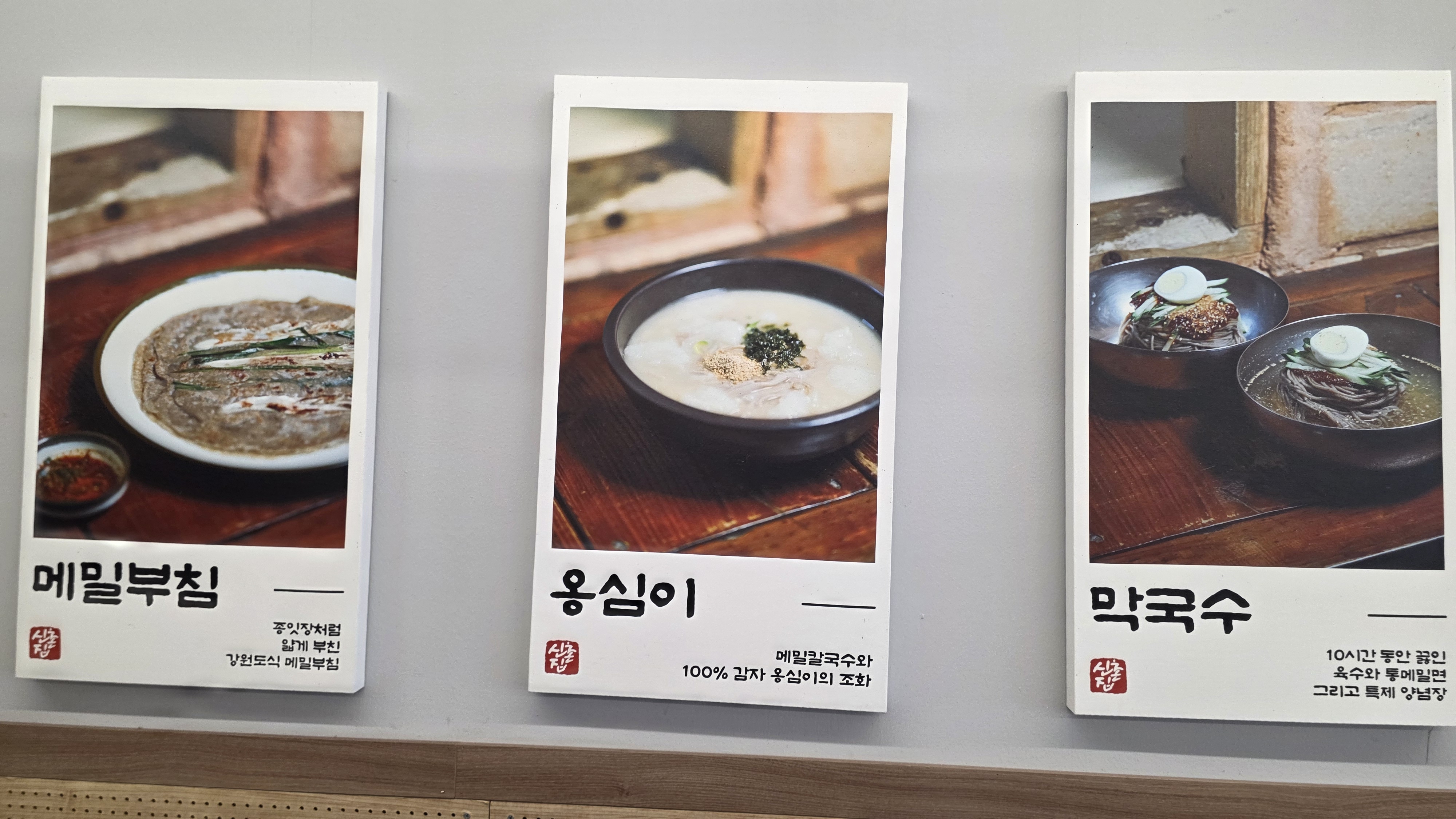 늦은 점심 시간이라 워이팅 없이 바로 자리를 잡고 옹심이+막국수 주문.